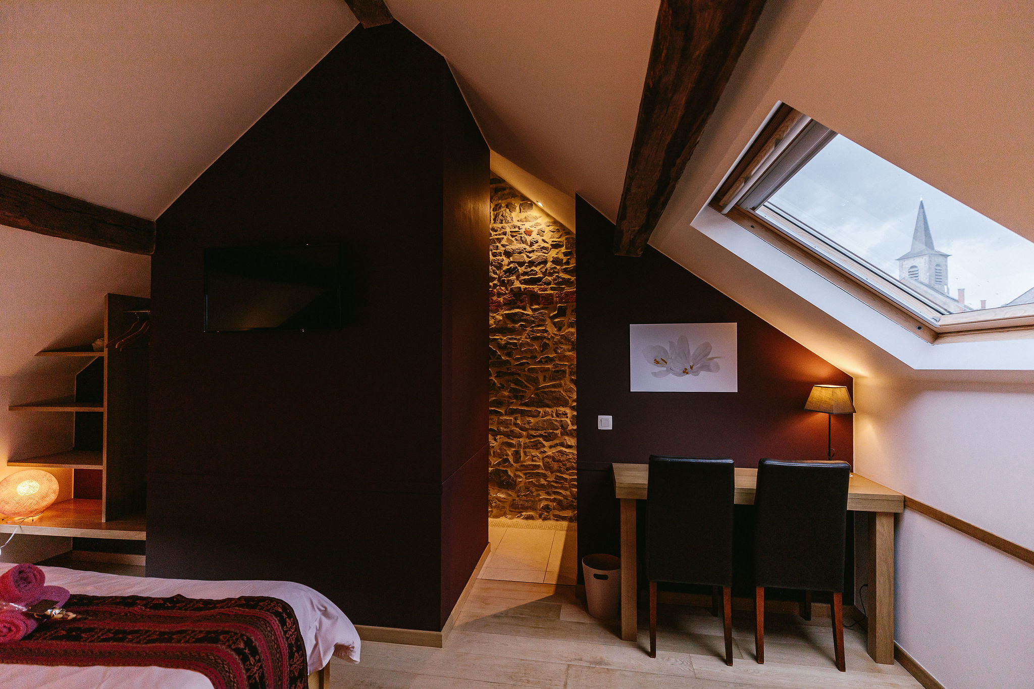 Son espace, ses teintes douces et chaleureuses, ses poutres et pierres apparentes dans la salle de bains vous plongent d’emblée dans un sentiment de bien-être.